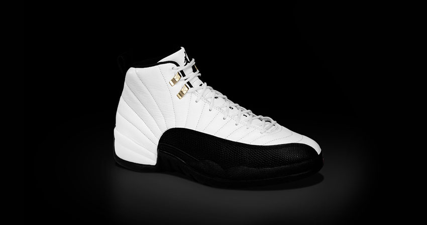 球鞋介绍:Air Jordan 12在1996年11月推出,设计师从女性高跟鞋中汲取灵感,独特的非对称撞色鞋面延伸至鞋跟部位,类似蜥蜴皮革的设定不仅使整双球鞋更加富有质感,同时也提供了更为坚韧的保护,整体极具视觉辨识度,在中底上首次搭载了性能更加出色的全掌Zoom Air气垫,配合中部碳纤维抗扭,将轻质缓震提升到了一个新的高度。AJ 12鞋带孔顶端的金属扣算得上是点睛之笔,但不是很实用,因为金属扣在球鞋界可以说是出了名的“鞋带杀手”。