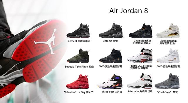 小故事:乔丹连续第三年总决赛MVP,又突然的宣布退役让很多球迷觉得他不再会重返赛场,8代被认为是乔丹赛场上穿着的最后一款,因此8代创造了93年耐克公司的销售记录。