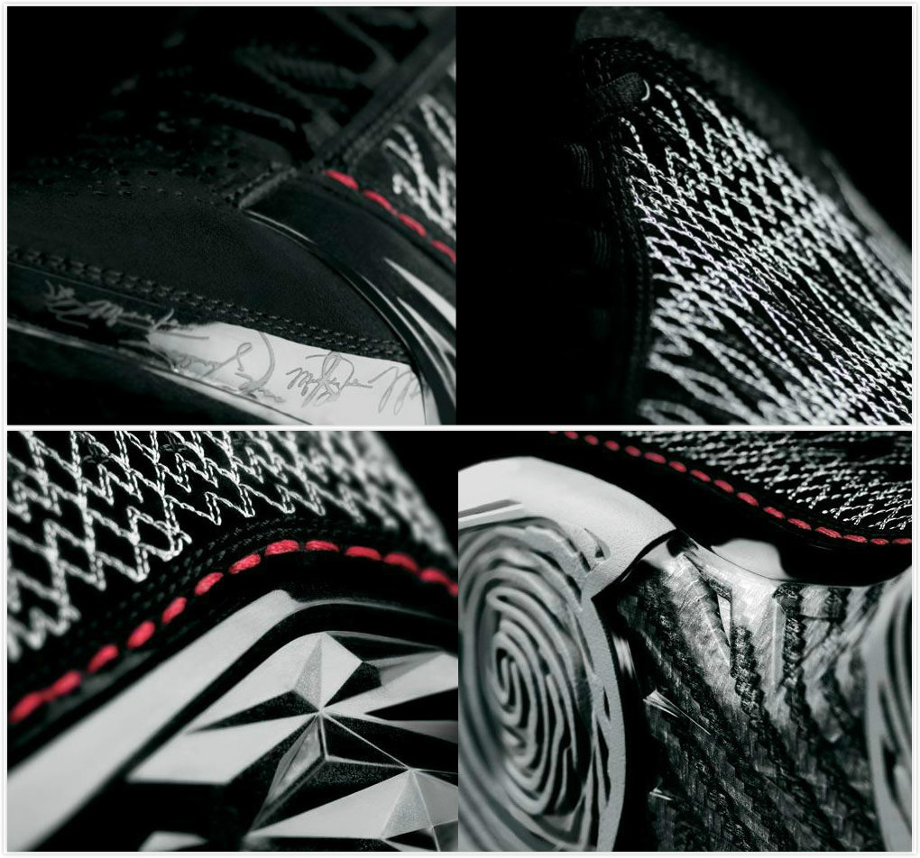 外观特点:环保设计理念、球鞋侧面手工缝制图案、鞋舌上拇指纹印、鞋尖上的凸印签名
