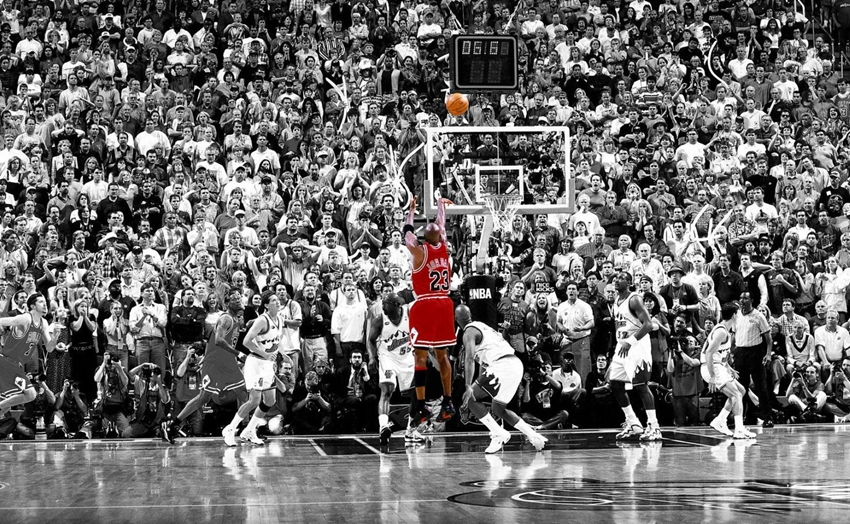 历史背景:1996-97赛季,经过6场比赛,乔丹率领芝加哥公牛击败犹他爵士,连续第2个赛季、也是第5次夺得总冠军。乔丹个人连续第2次、职业生涯第9次夺走得分王称号,连续第2个赛季夺得总决赛MVP。