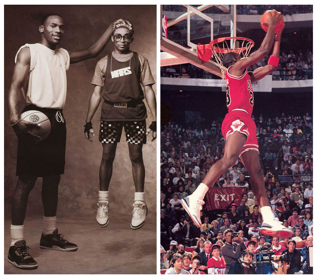 小故事:乔丹在NBA赛场上穿的第一双鞋并不是AJ1,而是一双名叫Air Ship的高帮篮球鞋。次年也就是1985年AJ1才正式亮相。因太过前卫,起初连乔丹自己都无法接受。在那个球鞋只有黑或者是白的年代,AJ1的黑红配色确实太过花哨,NBA联盟也禁止乔丹在球场上穿此鞋。可正是因为这道禁令,成了耐克最好的宣传广告,于是耐克一边给乔丹交着每场高达$5,000的罚款,一边大力宣传,大获成功。