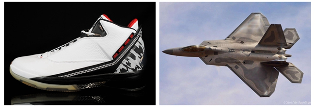 球鞋介绍:Air Jordan 22是Air Jordan系列中第三双以飞机为灵感打造的球鞋,设计灵感来源于被誉为世界最强战机的F-22猛禽隐形战机,鞋身的流线造型参考了空气动力学,后跟显眼的TPU设计犹如战斗机的座椅,迷彩元素的加入让鞋子更具军事气息;中底方面将军事中常用的钛元素与碳板有效结合,减轻重量同时也使球鞋更具科技感,改良版的I.P.S.缓震系统与后掌可更换式Zoom Air/Air Sole气垫单元也使缓震性能得到有力保障。
