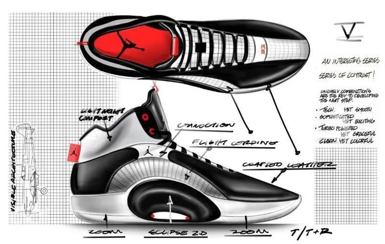 外观特点:渐变鞋;Jumpman、Wings和耐克Swoosh三个LOGO第一次同时出现在鞋面上;致敬AJ1鞋型