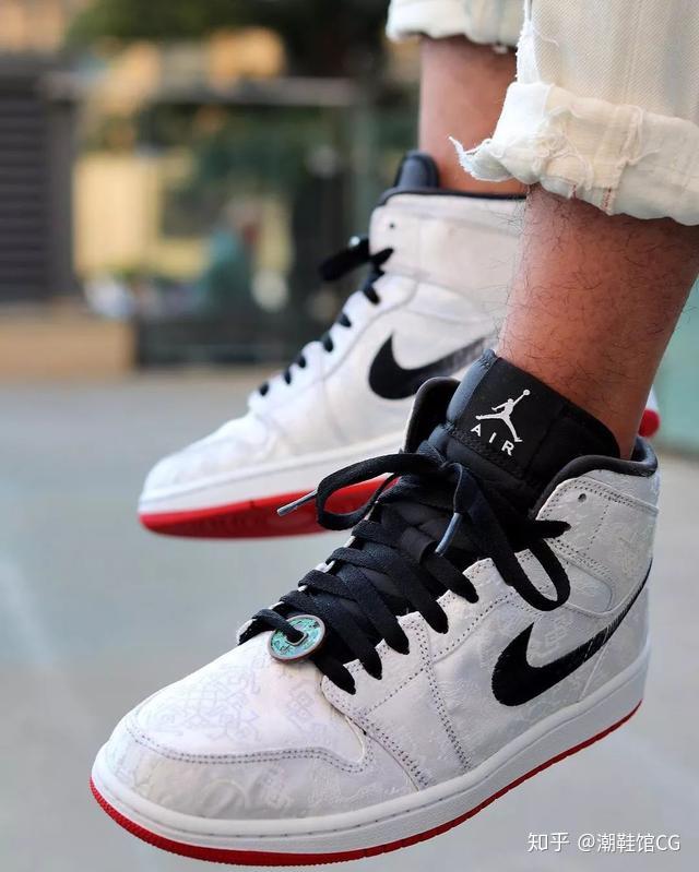 陈冠希亲作,近期丝绸共有四双,加上之前的 AF1 蓝、黑丝绸,和 AJ1 Mid 白、黑丝绸,12 月 7 日发售的 AJ1 Mid 白丝绸比起黑五发售的黑丝绸更显眼,纹路非常清晰,整体除了颜色上并无其他改变,中国风的元素,依然是“鞋带串币”。