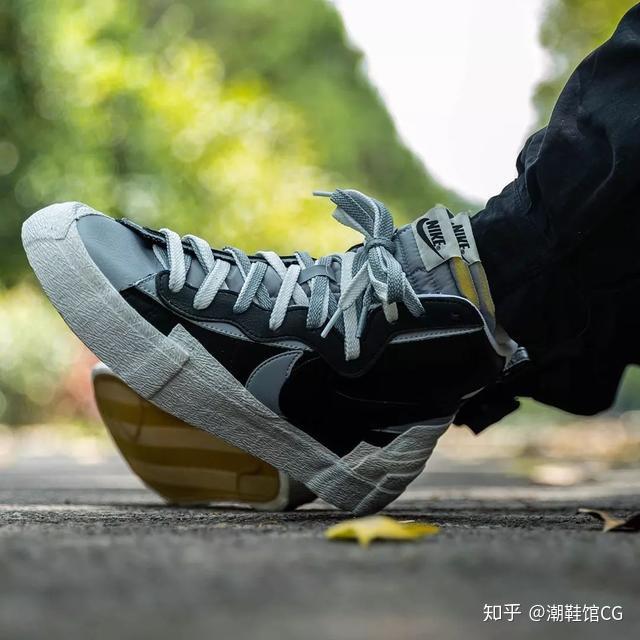 跳票已久的 Sacai 联名终于来了,这次以 Blazer Mid 为蓝本重新解构打造的共有黑灰,白灰两个配色。