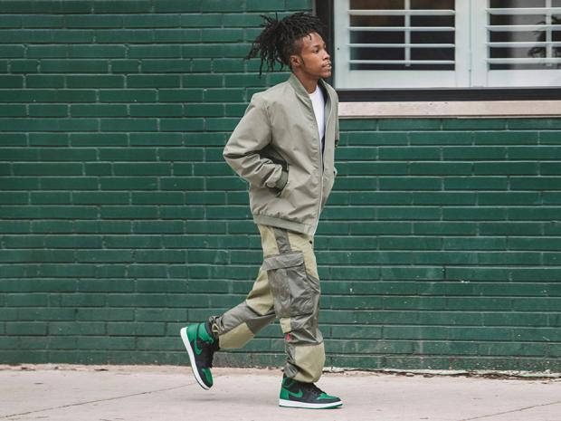 新鞋秉承Jordan品牌设计理念,同时致敬迈克尔.乔丹永不磨灭的伟大传奇。Air Jordan I “Black/Pine Green”将经典的撞色设计融入其中,明亮的松绿色皮革呈现在后跟、鞋口、鞋头和Swoosh等元素和部位上。