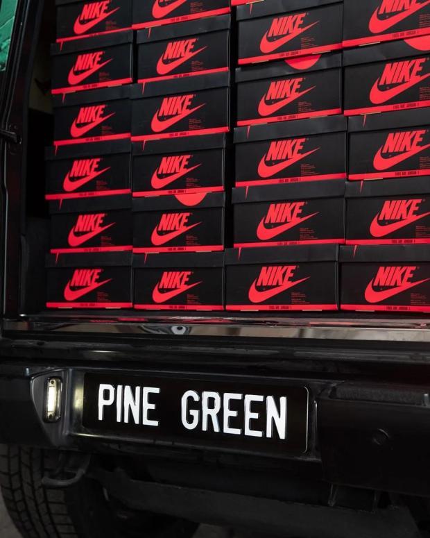 前后车牌分别是白色的Titolo和Pink Green标识,左右侧后窗则贴有Jordan和Titolo的红色Logo。打开尾门,车内整整齐齐的堆满了鞋盒,备胎盖上还喷绘了一个二维码,可供消费者扫码了解鞋款的巡游发售活动。值得一提的是,Air Jordan 1“Black/Pink Green”新鞋款在国内的预计发售时间为2月29日上午9点,价格为1299元。(文/汽车之家 李伊文)