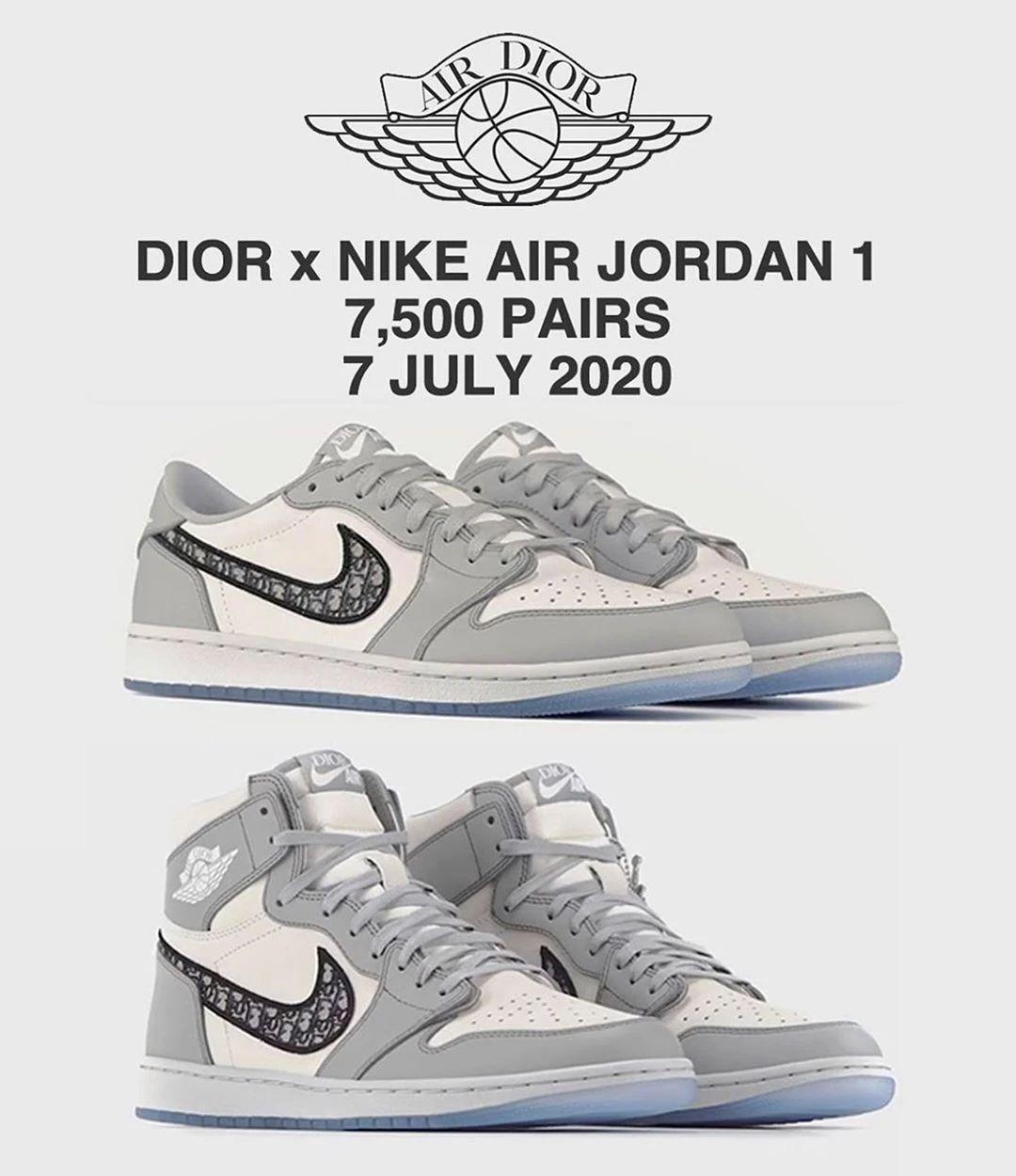 国外多家球鞋媒体报道,Dior x AJ1将在7月7日全球发售,高帮货量依然是之前曝光的7500双,低帮货量则是处于一个“薛定谔”的状态。