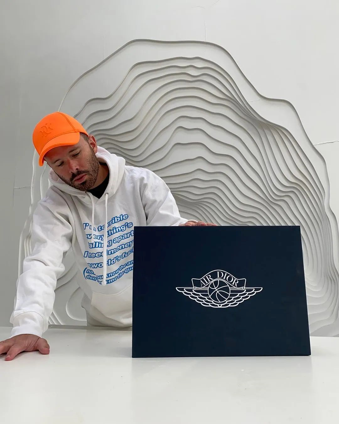 前几日,纽约著名现代艺术家 Daniel Arsham 也晒出了由Dior亲自送出的特殊鞋盒版本的Dior x AJ1。