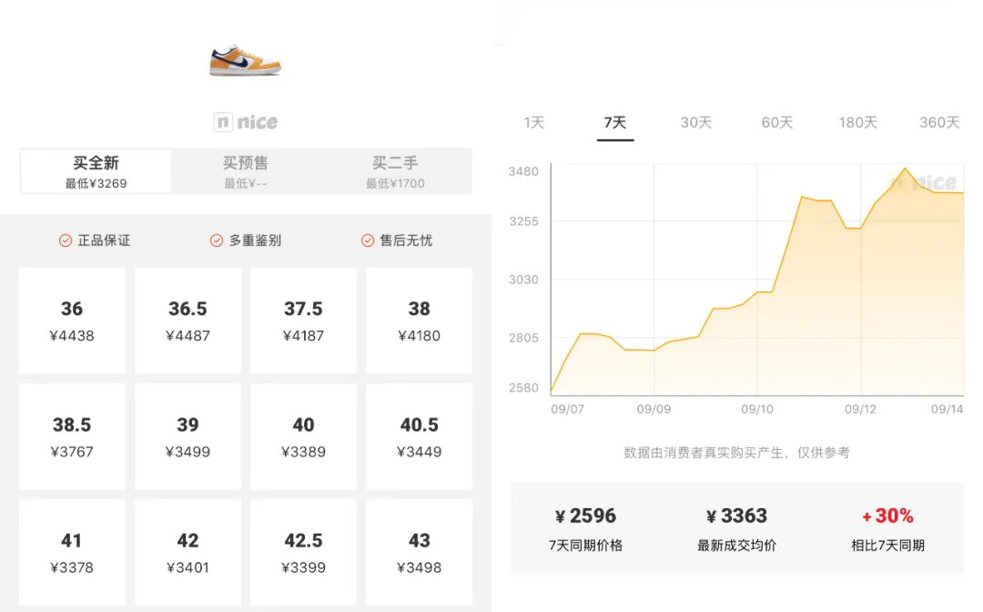 目前这双球鞋黄金码全线5K起步,超越去年冲冲日重回价格巅峰。