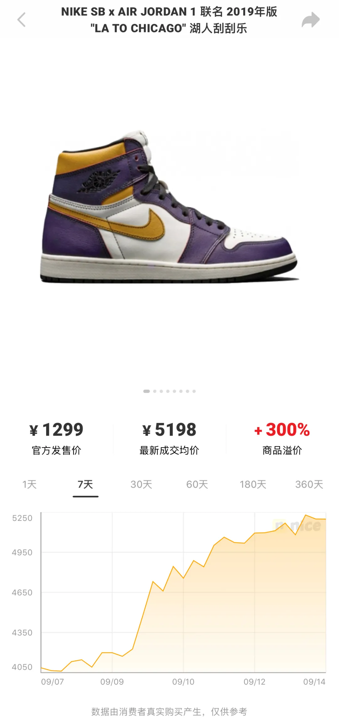 没想到吧,去年冲冲日后割了大批韭菜的AJ1湖人,又站起来了!短短七天,平均涨幅1K+!