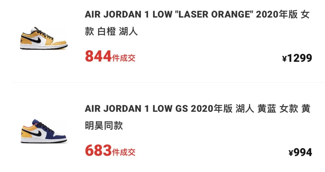 而近期的销量榜首,就是AJ1湖人 LOW。