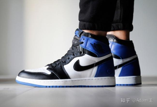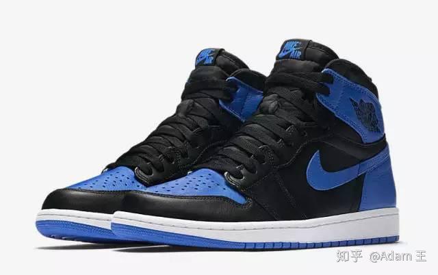 这是很经典的一款,AJ1 皇家蓝,这款就是一个og款。也是high鞋型。air标,飞翼,9孔全都满足。