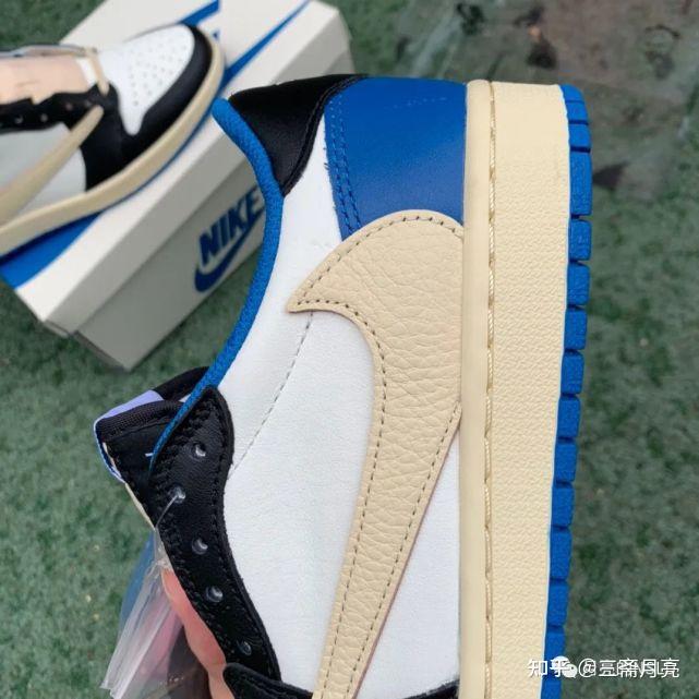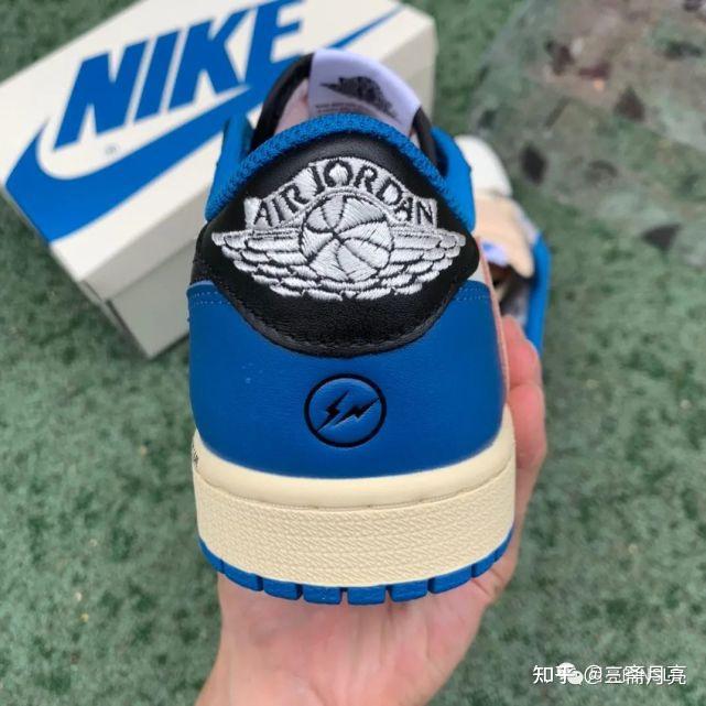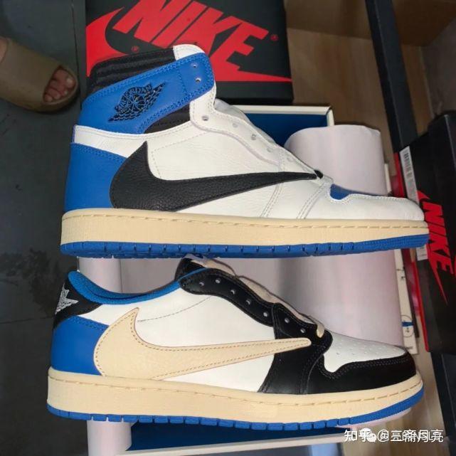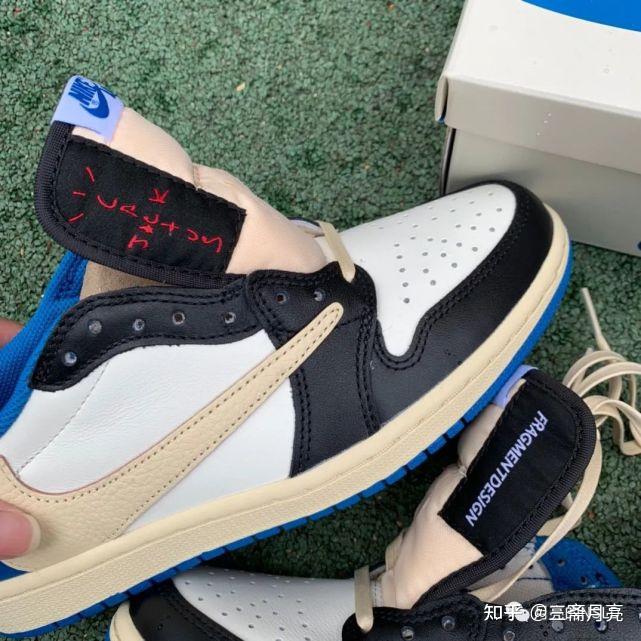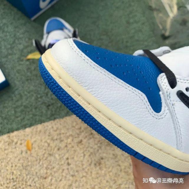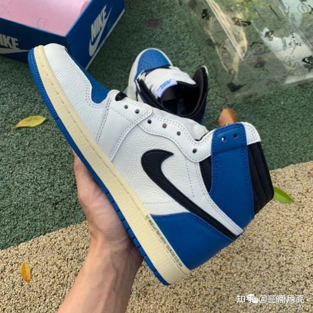 比如月亮给大家现在看的高低帮Travis Scott x 藤原浩 x “闪电Logo”三方联名 Air Jordan 1 Hi OG SP “Military Blue”