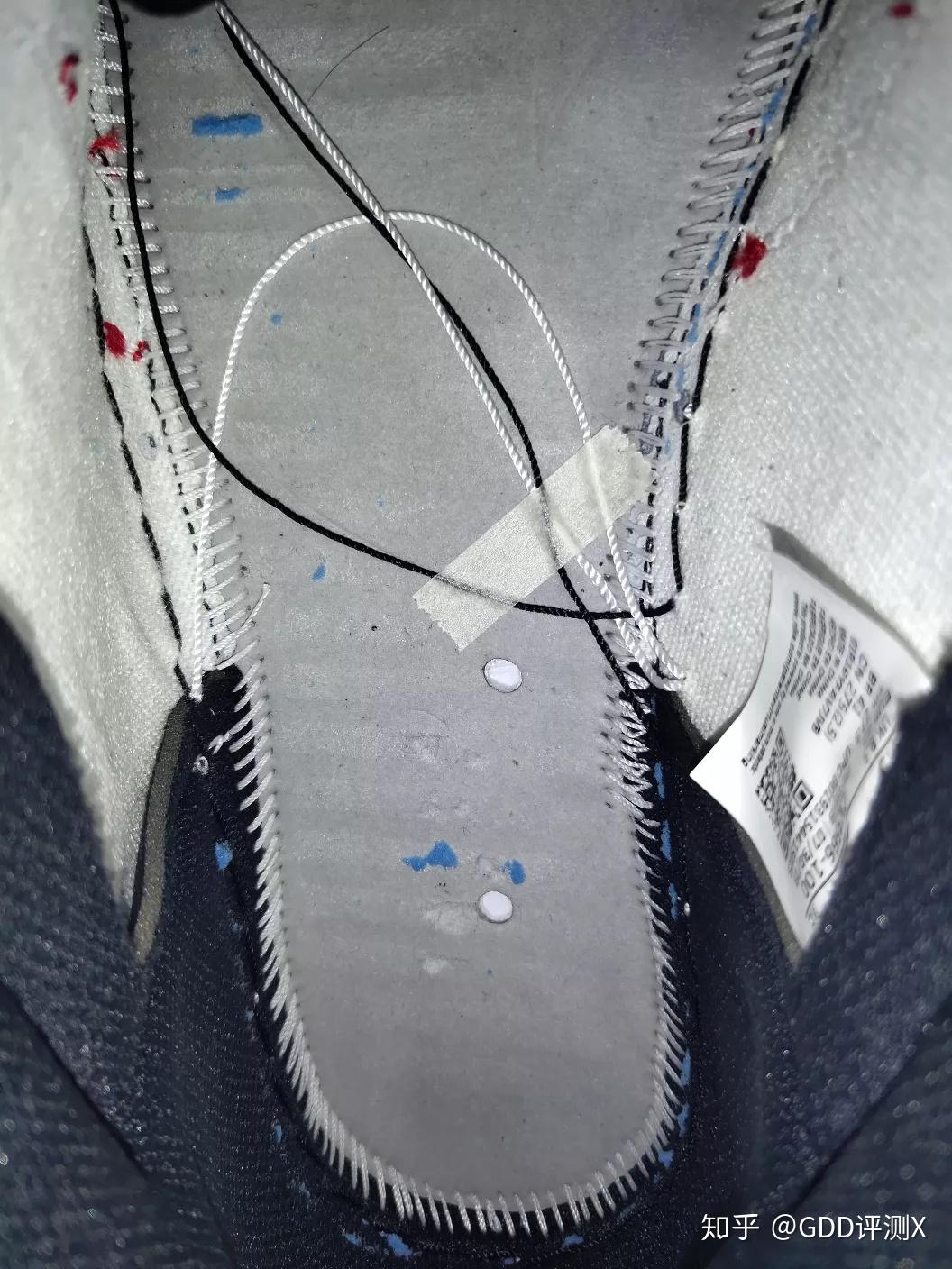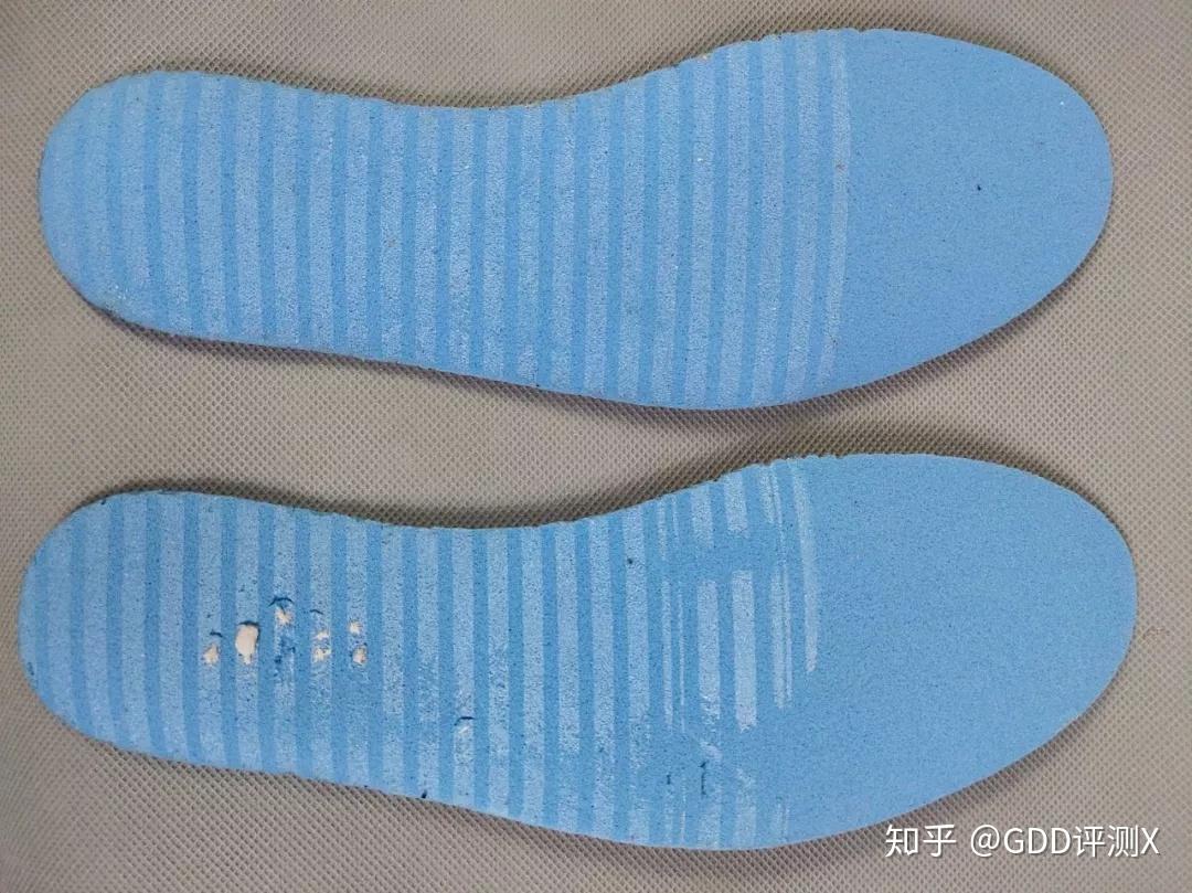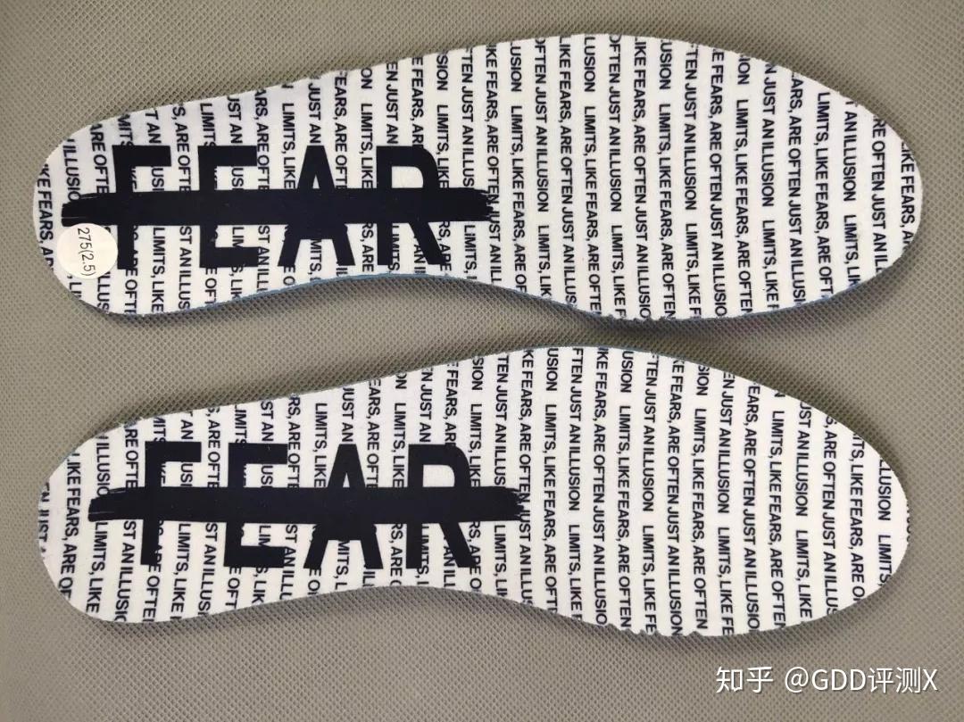鞋垫正面看,FEAR印字,正品的颜色偏蓝,组鞋的颜色偏黑。有的手机屏幕可能不太好看出来,光照后用肉眼看的十分明显。鞋垫背面刷胶正品胶量更大,撕鞋垫真的费力,很容易撕坏。至于规律,自己找找吧,材质这里照片拍出来的有些色差,但是我用肉眼看完全一样。