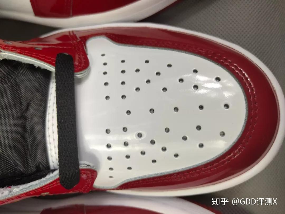鞋面来看,正品的皮子会比组鞋的皮子稍微白一些,很细微较难分辨,也不排除氧化的可能,毕竟这款组鞋几个月前就已经出货了。鞋面冲孔看不出来任何问题。