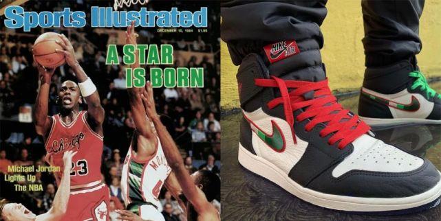 以及乔丹在芝加哥公牛新秀赛季首次登上体育画报杂志封面,AJ1又推出了"体育画报"。