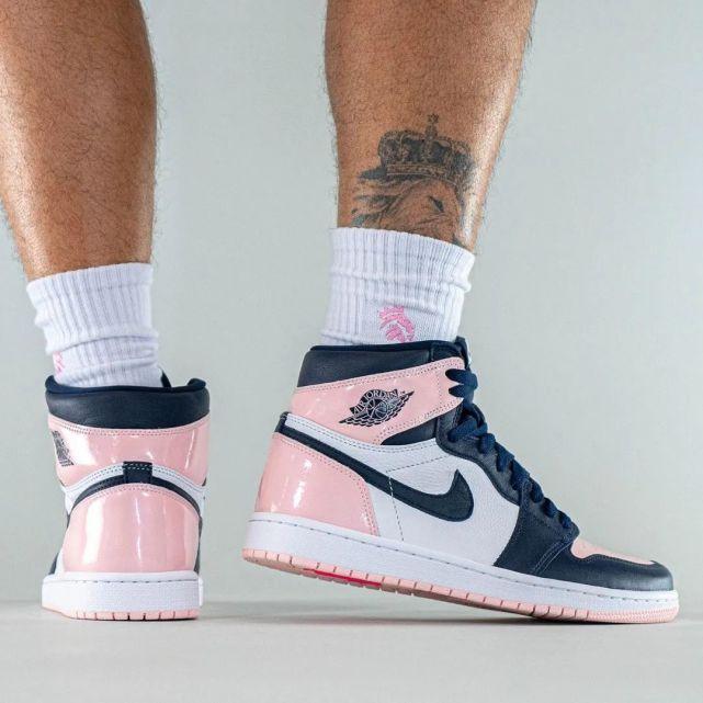 现在,又一双从乔老爷子身上汲取灵感的AJ1 High OG “Bubblegum”上脚图得到曝光!