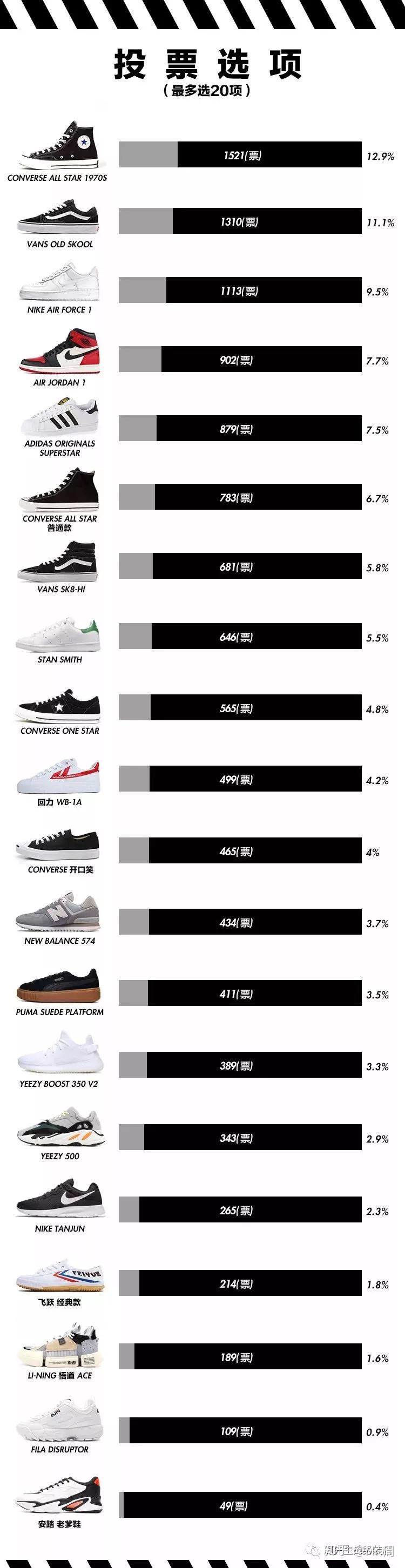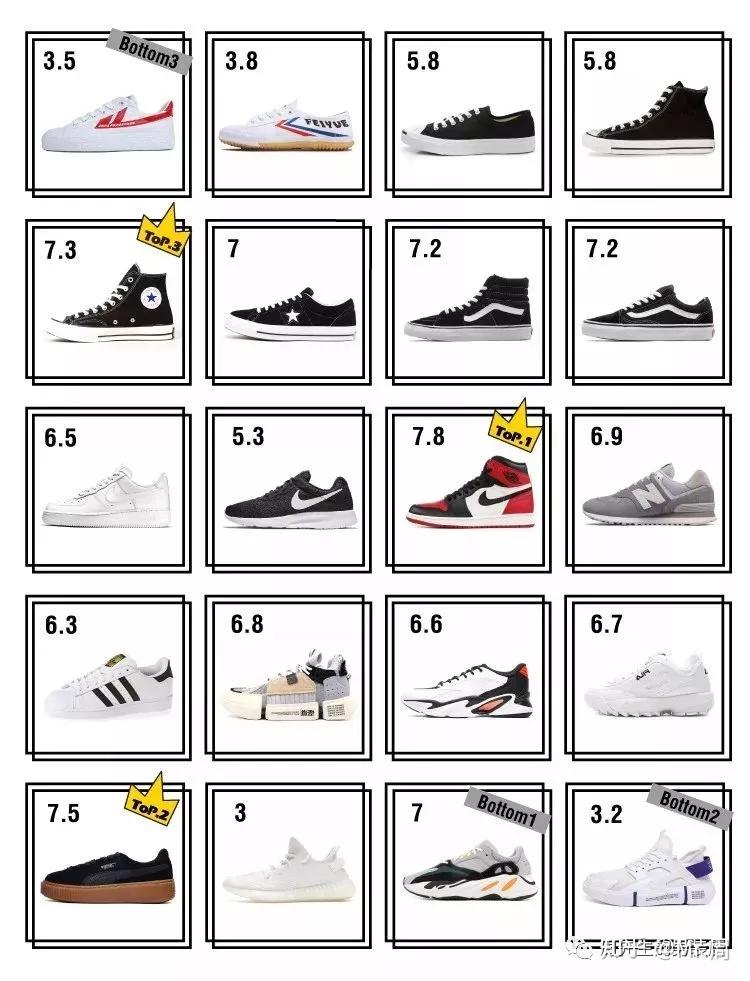 精心挑选了 20 双学生党zzui常穿的球鞋,对它们进行了外观颜值、耐穿性、造型百搭能力等多纬度测评,看看到底哪双球鞋是样子货,哪双球鞋是性价比之王。 微博做了个小调查,征询【学生党zzui爱穿的球鞋】并进行了投票。CONVERSE Chuck Tylor 70s、VANS Old Skool、NIKE AIR FORCE 1 成为榜单里的人气 TOP3 。果然还是平价又耐穿的经典鞋款才是大家zzui爱! 那么大家票选的【人气王】真的非常值得入手吗?单纯是因为价格便宜,还是说颜值抗打又耐操? 所以高性价比的球鞋必须满足 3 点:平价,百搭,耐穿! 除了 CONVERSE、VANS 等高人气鞋款,就连平价国货回力、飞跃也有,学生党咬咬牙吃土半年也要买的 AJ1、YEEZY 也涵盖其中。到底买哪几双球鞋即能够满足潮流穿搭也避免荷包吃土? 作为学生党,一双球鞋的外观颜值往往是考虑重点之一,竞赛穿的跑鞋你把它的舒适度和科技含量吹爆了,如果颜值太难驾驭也不会愿意花钱买来穿的。 为了贯彻“外貌鞋会”核心精神,本次评分标准只有一个:只看颜值!只看颜值!只看颜值! 对的,不考虑价格,不考虑球鞋话题度,只针对球鞋外观打分! 这双 69 块钱包邮的“全员精品富”毫无争议地获得一致差评。 华莱士的鞋身、李宁悟道 ACE 的鞋底、OFF-WHITE 风格说明书文字、恶人紫的配色点缀,真的是集爆款设计于一身啊!正是这样简单粗精品的 copy 设计遭到大家嫌弃,甚至有人说一分都不想给。 其次颜值遭到质疑的是这双 300 块就能入手的 NIKE TANJUN。 咦,这不是阿姨们的代步鞋吗?可别小看了这双有点像 Roshe One 的小跑鞋,它可是 NIKE 全美zzui畅销鞋款,包括 NIKE 天猫旗舰店也是销量榜首,是不是突然想起来在健身房频频见到它? - 颜值得分 - AJ1 获得颜值zzui高均分 8.72分,其次是 CONVERSE Chuck 70s(8.61分)、NIKE AIR FORCE 1(8.5分)。可能在不考虑价钱的情况下,AJ1 颜值更讨喜吧。 不知道怎么回事,球鞋圈里的鞋头们普遍存在一个蜜汁癖好:嗅鞋。新鞋买来后相机拍照都得往后稍稍,先开箱闻一下新鞋气味。而且一定要原汁原味、来自生产线上新鲜封存后未经污染的第一嗅! 深深吸入的那一下你是置身在球鞋堆砌成的珠峰之顶吗?世界只有你与鞋的存在,再无他物。 像 CONVERSE 和 Vans 这样的帆布鞋,硫化底的橡胶味比预期轻很多,几乎是要凑近鼻子用力闻才能闻到。 跟其他基本无味的球鞋形成强烈反差,这双“全员精品富”一定实名批评!简直就是重型生化武器!还没打开鞋盒就能闻到浓浓的劣质橡胶味,隔着 10 米开外的小伙伴都被熏到了。 - 新鞋气味得分 - 但是发现随着现在各品牌制鞋工艺的提高以及环保材料选用,其实大多数球鞋并没有什么明显味道,有些球鞋甚至基本无味。 学生党都是精品走狂人,偌大的校园从宿舍走到教室,教室走到食堂,南门和北门是异地恋的距离;没课的时候逛吃逛吃依然离不开双脚的精品走,所以鞋子的舒适度非常重要啦。 ▲踩踩踩~ YEEZY BOOST 350 V2 上脚真的是又软又 Q,“Q弹”这个词形容 BOOST 底真的太贴切了!针织鞋面即提供舒适的包裹性又不闷脚,袜套鞋口穿脱自如。 同样作为平价国货的回力和飞跃,本以为各项对比都会没多少差距。但实际上脚后发现,回力球鞋无论在鞋底舒适度还是包裹性上都优于飞跃。 而遭到大家一致嫌弃的“全员精品富”,竟然在这一轮测评里成了黑马。上脚舒适度赢过全场大多数鞋款!2 位试穿的同事都忍不住夸赞,甚至连用 3 个“好轻啊!”来感叹,上脚之后像没穿鞋一样。而我们实际称重对比,这双鞋确实是zzui轻的。 ▲果然对得起鞋盒上的广告语 其他鞋子脚感评价: CONVERSE ONE STAR 看起来很单薄,但是上脚很笨重,实际称重竟然是所有鞋子里zzui重的一双(43码,978g); FILA Disruptor 因为超厚鞋底导致弯曲度大打折扣,走路时候脚感很硬; 安踏老爹鞋上脚一点也不“老爹”,鞋身很窄很挤脚,而且穿脱都非常困难; 李宁悟道 ACE 袜套鞋口很鸡肋,穿脱都非常吃力; - 穿着舒适度得分 - 球鞋穿着舒适度与鞋底柔软度、弹性及球鞋包裹性有很大关系,获得 TOP3 的三双球鞋都是针织鞋面。 考量平价球鞋性价比,必须要验证它有多“耐操”!毕竟手头不富足,买了一双鞋至少要陪伴一年两载吧?所以学生党买鞋一定要选择实打实的全能王,既要耐磨防滑,又要防水抗污。 下面针对球鞋的耐穿性,我们从抗污防水性、防滑性、耐磨性几个方面进行测评。 · 抗污防水性 球鞋耐穿程度绝对要跟它的抗污防水性挂钩,不耐脏的小白肯定穿不久,突然下雨没带伞一路冲回宿舍也不心疼鞋,那说明防水性妥妥的。 所以我们用清水、可乐、面粉分别模精品雨水、污渍、粉尘,去测评一双球鞋的抗污防水性能。 本以为麂皮材质肯定不防水,但其实粗粒表面可以达到一定物理防水效果,这就是所谓的“荷花效应”啦。但是也不代表可以长时间接触水哦。 网面和帆布鞋面就很容易吸水,而且很快渗透到鞋子内里。尤其网面球鞋,下雨天就是行走的海绵了... - 抗污防水性能得分 - 由此可见,白色帆布鞋面的鞋子抗污防水性zzui差,因为白色不耐脏,帆布材质又很容易渗水难清洗;而深色光面皮革球鞋自然抗污防水性能非常好了。 · 防滑性 你有没有遇到过这样的情况:学校食堂地面总是油腻腻,脚上鞋子防滑性稍微差一点都要走路小心翼翼,万好上端的饭菜洒了一身可就是一万点悲剧了。 此外鞋底的纹路也很重要,纹路凹凸明显的鞋底防滑性也大大提升