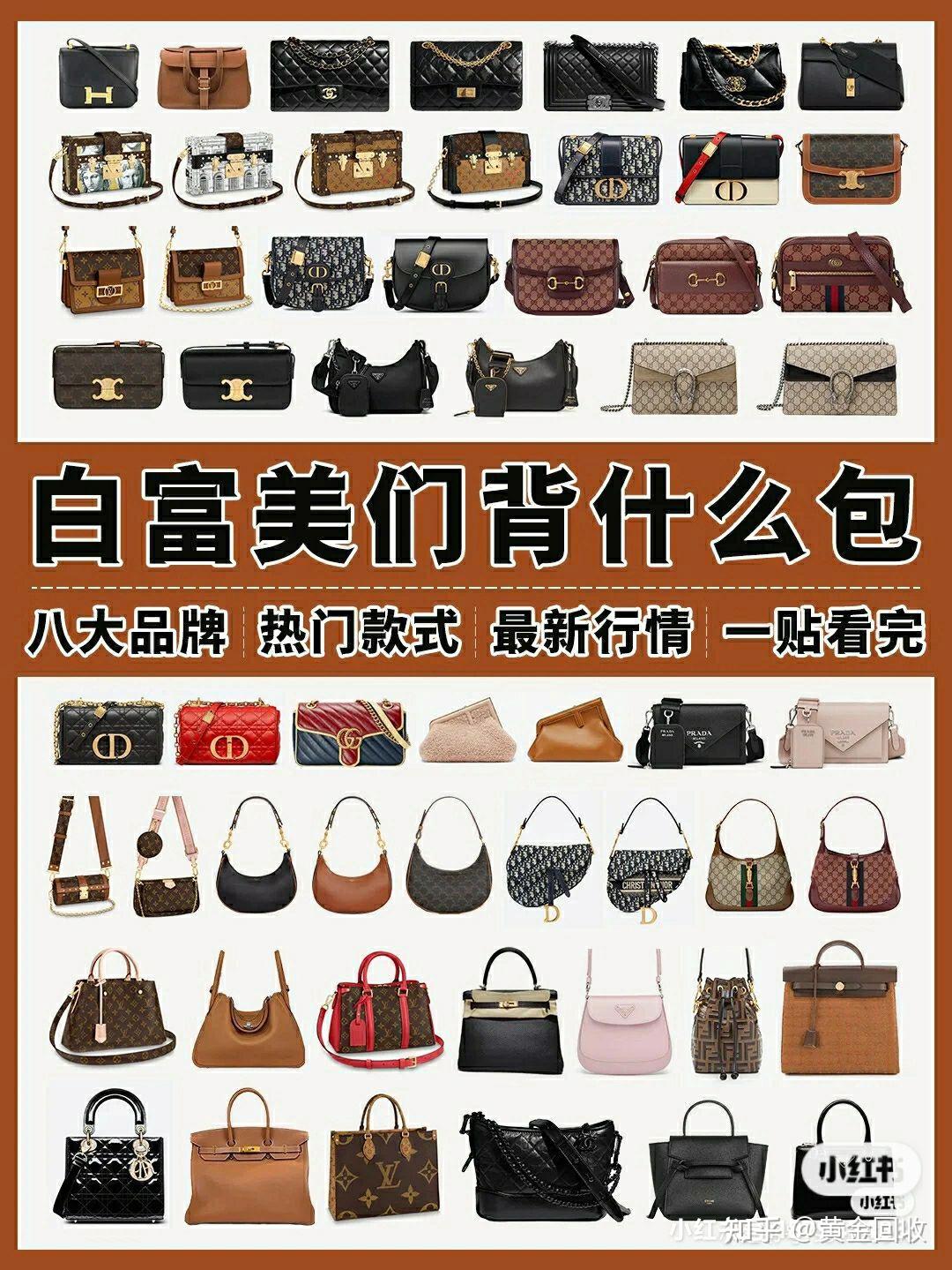 白富美一般都背什么包包呢,今天就带大家一起盘点一下。 一、Hermés 爱马仕 爱马仕(Hermés)作为少数独立运营的奢侈品牌,和其他被收购的资本贩牌不一样,血统更加高贵,对待包包的工艺,百年如一的高标准,Birkin的限量款更被称为艺术品,因为每年的价格都在涨,已成为部分贵圈人的理财产品~ 二、Chanel 香奈儿 作为奢侈品界的优雅名流,香奈儿可以说是女生们心中的梦想清单,经典的2.55包,多变化的Gabrielle还有zzui新推出的Chanel19等,秒杀各个年龄段的小姐姐,难买程度也是越来越高~ 三、DIOR 迪奥 整体风格优雅,精致、时尚、名媛风、品牌辨识度高,Lady Dior戴妃包堪称经典之作,Saddlle马鞍包和今年新款Bobby,又掀起了时尚圈人士的一股潮流。 四、Louis Vuitton 路易威登 说到奢侈品包包,LV的老花款包包可谓是LV的品牌的门面,没有老花的lv是不完整的。其中水桶包、Iv贝壳包、lv盒子包、lv圆饼包等等也是越来越受欢迎。 五、Gucci 古驰 Gucci这几年势头可以说是突飞猛进了,每个季度都有热门的款式,很多爆款包包一个比一个好看,GG Marmont还有老花系列都是非常经典的。 六、Fendi 芬迪 Fendi的包包在奢侈品牌中一直是简约低调的存在,不过无论是在包包的设计感上,还是在人气热度方面都一直居高不下,其中Baquette法棍包以及Peekaboo系列包包,都是非常经典的。