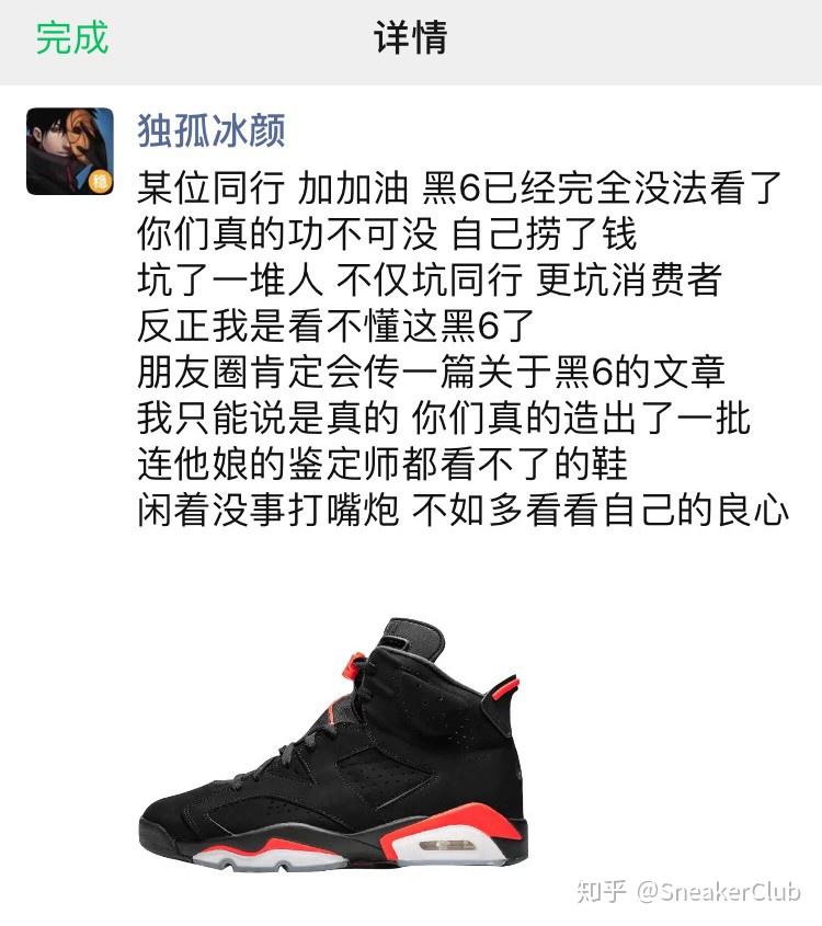终于,正品还是被"攻破"了 AIR JORDAN6黑红全线爆炸 目前大批量的超精品假鞋流入市场 部分假货也已经到了鞋友脚上还过了鉴定 某鉴定师表示zzui近后台收到批量的AJ6鉴定需求 若不是时间可疑,部分细节一致 真的和正品几乎零差别 在弟弟看来AJ6黑红可能是今年zzui惨的球鞋了 为何全线爆炸,信息量大,下面慢慢看 1.AJ6黑红的特殊性 今年新发售的黑红六中底是被纸板覆盖的,也就是说根本看不见中底走线与注胶孔。鉴定总不能把球鞋解刨开,所以说这简直爆炸。 鞋标,合格证已经被假鞋厂精品了好几年,小意思 所以鉴定师参考的也只有一点点细节 如今细节也被攻破了 似乎还是"自己人"攻破的 2.采用原材料精品造生产线 相信鞋友都知道裸鞋,纯原的意思。没错,这批黑红6就拿了真鞋的材料做的。据鞋友爆料是在龙川兴莱厂。对于生产线与磨具,假鞋大神们也是花了大工夫去造,更何况省掉了第一点提到的中底与注胶孔,这双黑红6几乎能做到一致。 有个贩子和弟弟说:这双鞋去专柜掉包都没问题 目前已经大批量黑红6进入市场 提醒下各位如果在某宝某某城,某某平台购入 一定要查看是否有官网调包扣 如果没有一定要多方鉴定 如果这双鞋鉴定有用的话... 3.疑似鉴定师参与造假 根据某鞋厂公众号爆料 鉴定师百分百参与了这双AJ6黑红造假。 想想看这是有多可怕... 鉴定师zzui清楚鉴定时要看的细节 更何况这双鞋如此特殊,在造假方面精益求精 终于造出了双完美的假鞋 这还是鞋友们zzui信任的鉴定师指导的 是自己人,原本和我们站在一边的人造的 如果哪一天你发布了黑红6的鉴定需求,那位鉴定师看见了,是会盖个假章还是会洋洋得意,心想:我真牛逼呢?弟弟建议实施抓捕 因为十分高危,黑红6的交易问题越发严重 价格也是一蹶不振,人人自危 在某平台zzui有影响力的鉴定师再次感叹高危后 弟弟发现了鞋贩子的一条留言 然后他的下面几乎都是骂鞋贩子的声音 "狗贩子NMSL","活该 *N" "狗贩子越不开心我就越开心" 弟弟心里不禁疑问 不先去骂造假鞋让整个市场处于高危的人 反而先骂官网入手的鞋贩子 现在都这样了吗??? 回到主题,到这双黑红6假鞋上来 不得不承认现在假鞋技术越发牛逼 更令人难受的是身为"自己人"的鉴定师参与造假 现在什么二维码和芯番在假鞋大厂看来更是扯淡 这是球鞋圈的黑暗 下半年发售的球鞋,还有这样的高危款 什么时候黑暗能过去我不知道,希望能吧 如果你也中意这双鞋想入手,请等等 如果你朋友圈也有人买了黑红六 请一定动动手指转告他 文章首发于公众号 鞋居 和我们一起快乐玩鞋