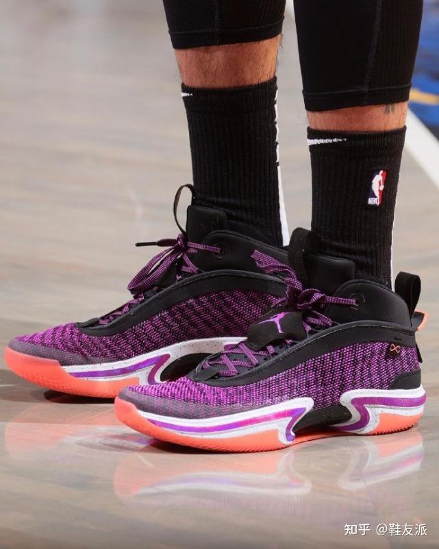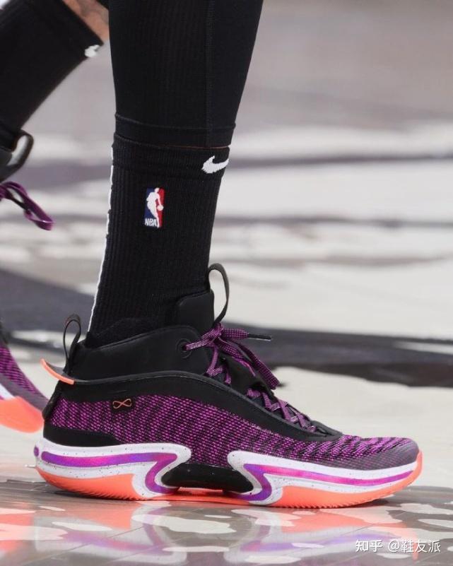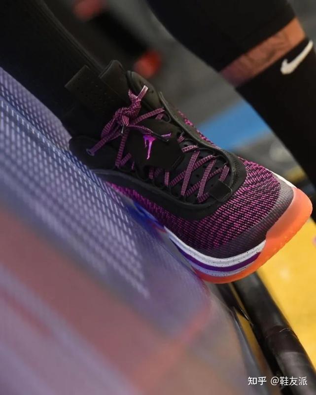 今年 Jordan Brand 显然提快了其正代球鞋的发售节奏,继昨天 WNBA 达拉斯飞翼队的前锋 Satou Sabally 视频晒 AJ36 以来,今天在波士顿凯尔特人对阵布鲁克林篮网的比赛里,绿军当家球星杰森-塔图姆也上脚了zzui新的AJ36,而且这一次我们也有了更加清晰的图片。 这照片真可以说是非常清楚了,鞋款通体以神秘的紫色加持鞋身,再点缀黑色带来渐变和波浪的效果。鞋面整体以织布材质打造,预测会比上一代AJ35重量要轻一些。 一眼望去,AJ36 的鞋身要比AJ35更加流畅,保持 Flightwire 科技形塑。AJ36 zzui显著的特点体现在鞋底,中间有一圈特点鲜明的白色中底,再加入一条像是上世纪90年代的镭射海洋波浪红条纹,让鞋款更具层次感。 另外这个区域还展示了全新升级的 Eclipse Plate 中底科技,预测极有可能是3.0版本。正是因为有Eclipse Plate科技加持,所以耐克才可以放手打造镂空中底,去除所有多余的材料,曲线与镂空的造型如同融入概念超跑的设计理念。 另外我们都知道,自打AJ系列的第31代开始,“致敬”主题便始终围绕着每一双Air Jordan正代鞋款。这双 AJ36 要致敬的便是AJ6,但从图片来看也仅仅体现在鞋舌固定片和后跟拉环的线条细节,不禁让人怀疑是否缺乏“诚意”? 再来感受下实物图对比。 除了安踏之外,李宁也有话说,AJ36 这造型如果都换成同一颜色的话,也跟韦德之道9撞车。真是巧,三双球鞋都有着相同的设计语言。 总之这波强行致敬安踏,派是服气的。鞋款现在刚刚曝光,具体的科技配置和设计细节还需要官方来说明,感兴趣朋友一定要继续关注,我们也会带来第好的资料。