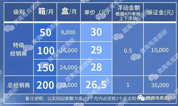 关于模式,据经销商阿青(化名)介绍,德沃微商是传统微商,代理商的利润来源基本上就是差价利润和零售利润,没有其他的各种奖金。德沃微商目前销售的产品主要有“佳茵”和“玻尿酸”,对应的分别是不同的产品价格表。佳茵: